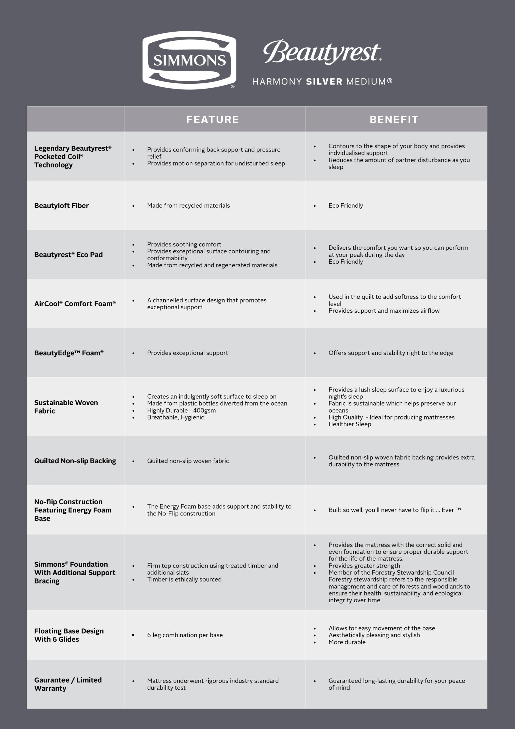 Beautyrest® Harmony® combines our Beautyrest® NxG Pocketed Coil® Technology, High Density Simmons Beauty Foam and Wool Fiber to help you experience a new level of support, comfort, and temperature management.
